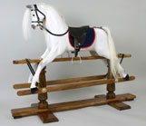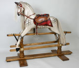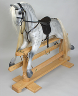 Rocking HorsesMorton Rocking Horses Birmingham is a UK rocking horse restorer and English rocking horse maker offering you the finest hand made wooden rocking horses and rocking horse restoration. We offer superb Victorian rocking horses which features an acclaimed stable of extra large and king size rocking horses for horse-loving older children and adults. These horses are tacked-up with the finest authentic removable English leather tack. You can also select from our vintage and antique rocking horses and take advantage of our acclaimed antique rocking horse restoration service for old rocking horses large and small. The finest restorers attend to rocking horse repairs and renovation, and Birmingham rocking horse restoration is a speciality.